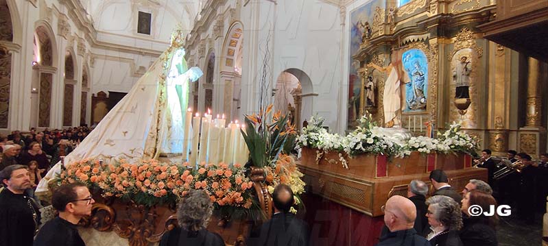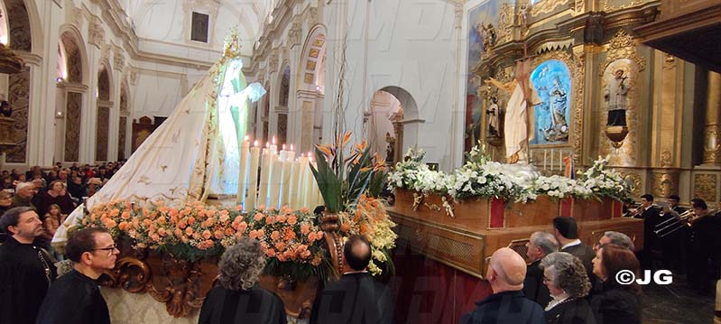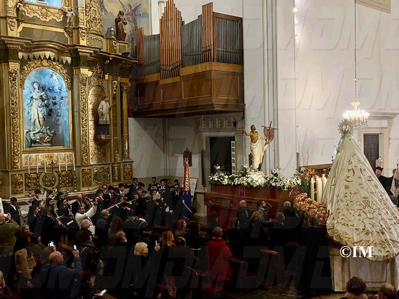 La verge s’ha acostat a l’altar, on es trobava la figura de Jesús ja ressuscitat, una vegada celebrada la trobada, la banda de música Ciutat de Benicarló ha tocat una peça musical.