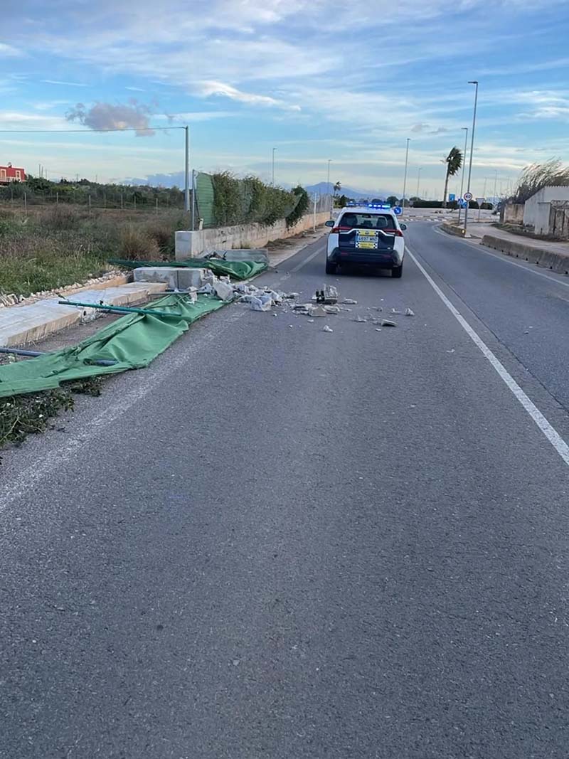 Según ha informado la Policía Local de Peñíscola, las intensas rachas están provocando la caída y desplazamiento de postes, árboles, vallados y distintas estructuras en la vía pública.