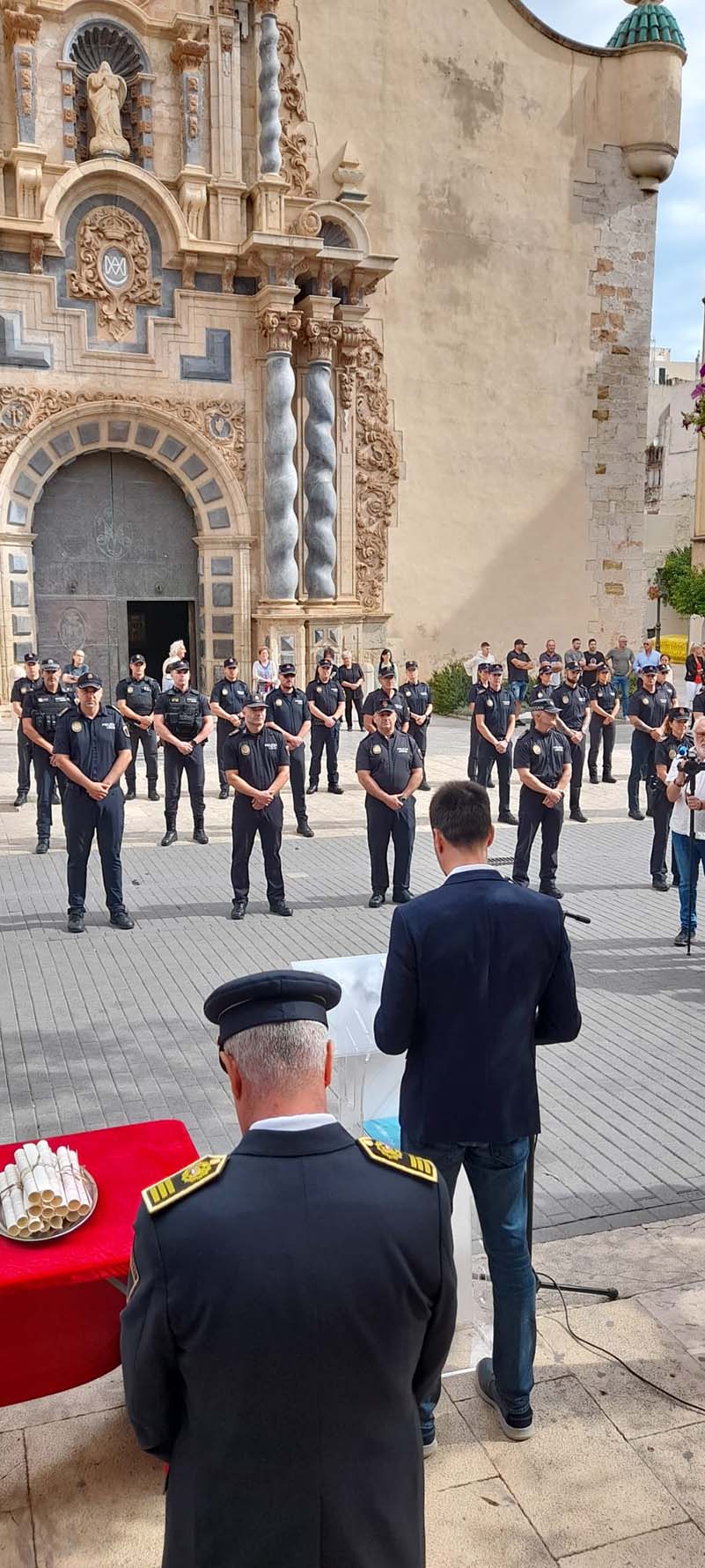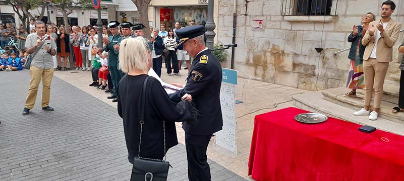 L’intendent cap, Juan Manuel Domènech, ha rebut de mans de l’alcalde, Guillem Alsina el distintiu blanc, pels seus 25 anys de servei com a agent i cap del cos. També va s’ha fet un reconeixement a la col·laboració ciutadana, sobretot pel cas de la desaparició d’un home de 83 anys que va ser localitzat en bon estat l’endemà, i a la figura de Constantin Nichita, que va faltar recentment. El reconeixement ha estat recollit per la seua dona.