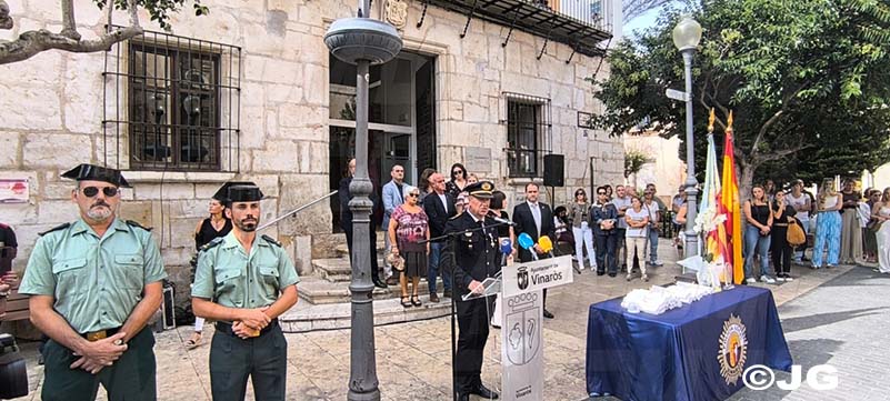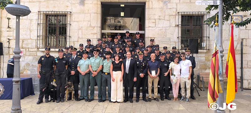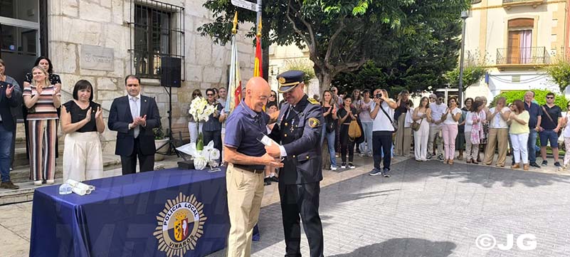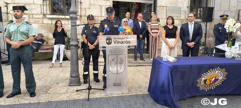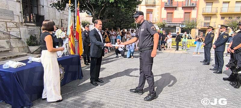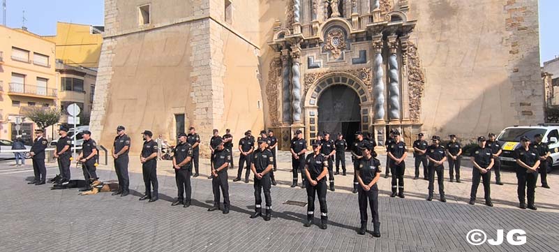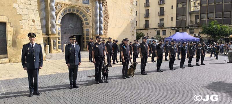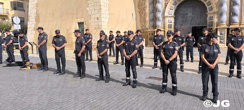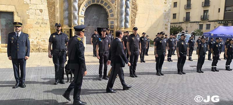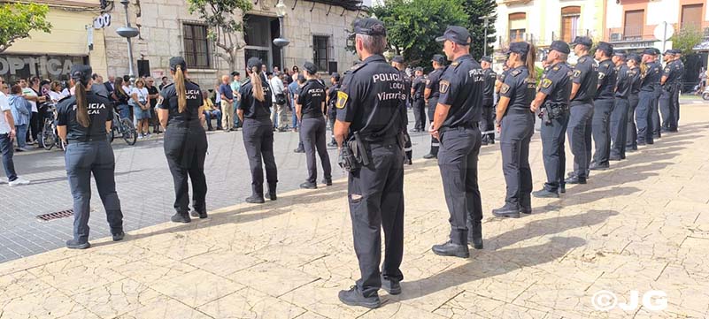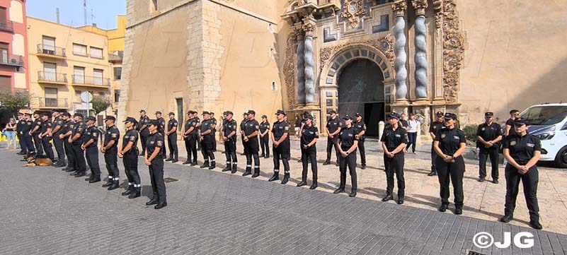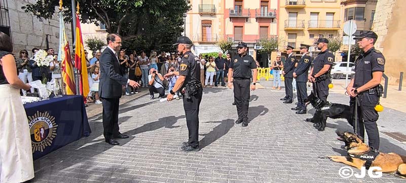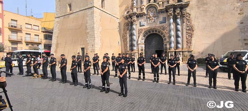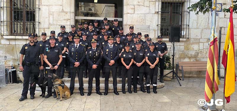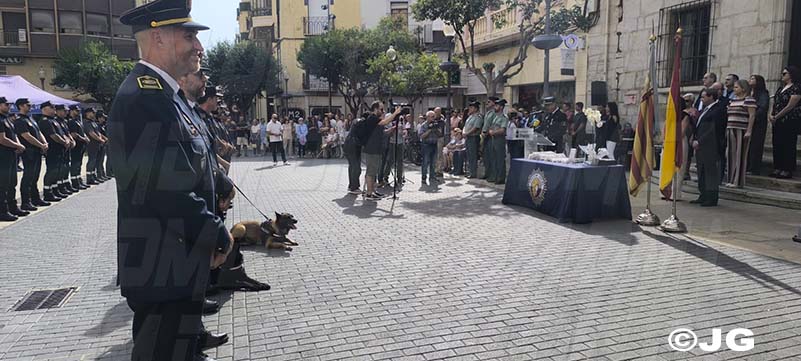 Posteriorment en la plaça de l’Ajuntament s’ha realitzat la formació de tots els agents del municipi i han rebut la salutació del vicealcalde Juan Amat i del Cap de la Policia, Juan Manuel Domenech.