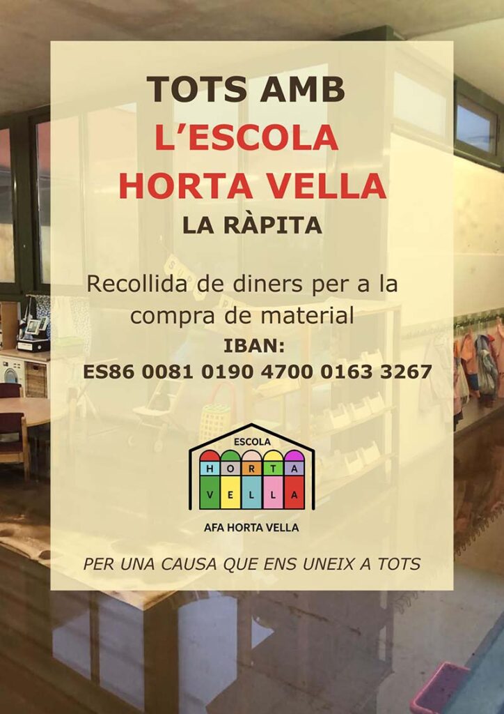 L’AFA de l’Escola Horta Vella de La Rapita, ha posat en marxa una campanya solidària per ajudar els infants que, després de les inundacions, s’han quedat sense material escolar.