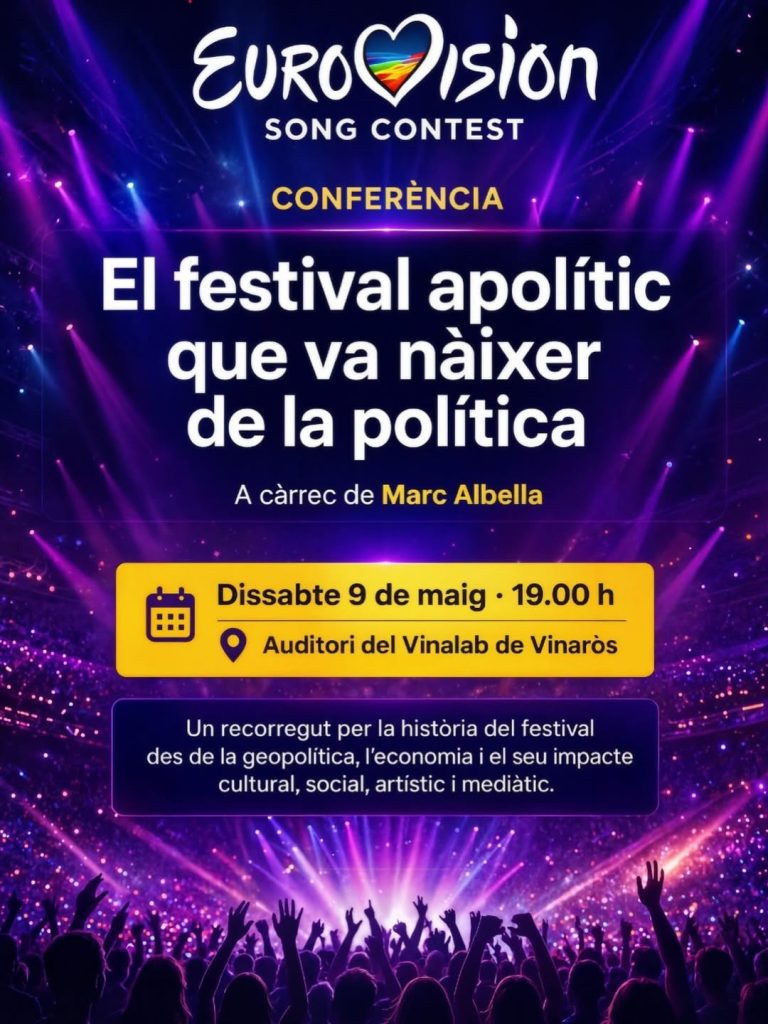 L’auditori del Centre de Coneixements del Vinalab de Vinaròs acollirà, el proper dissabte 9 de maig a les 19:00 h, la conferència “Eurovision: el festival apolític que va nàixer de la política“, amb Marc Albella com a conferenciant.