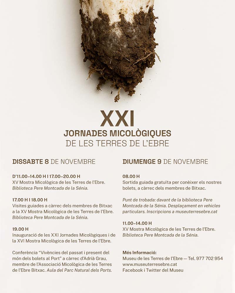 Del 8 al 9 de novembre, la Biblioteca Pere Montcada de La Sénia acollirà les XXI Jornades Micològiques de les Terres de l’Ebre, un esdeveniment que convida a descobrir el fascinant món dels bolets.