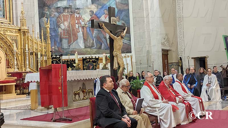 A continuació, dins de l’Església Arxiprestal, el germà hospitalari de Sant Joan de Déu, Francisco Agramunt Redó, que ha estat precedit pel president de la Federació de Confraries, Sebastián Torres, i el consigliari de la Federació, Emili Vinaixa.
