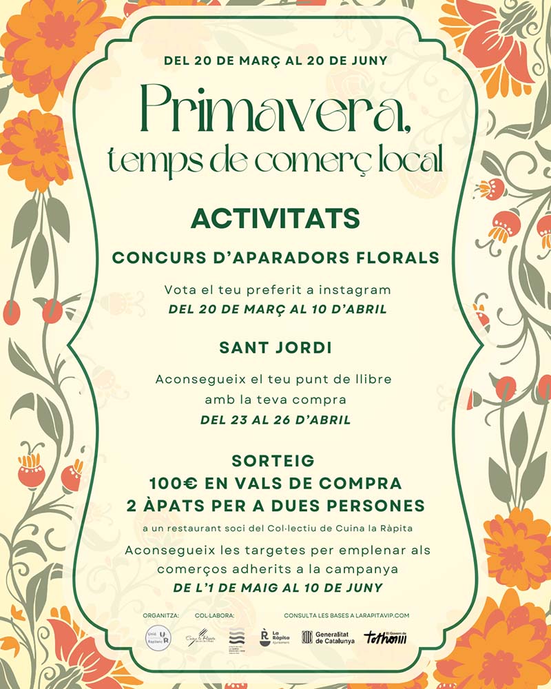 La campanya inclou diverses accions repartides al llarg dels tres mesos. D’una banda, els comerços participants lluiran un vinil identificatiu als aparadors i, del 20 de març al 10 d’abril, es durà a terme un concurs d’aparadors florals a través de les xarxes socials de la Unió de Comerç (@uniocomercrapitenc).