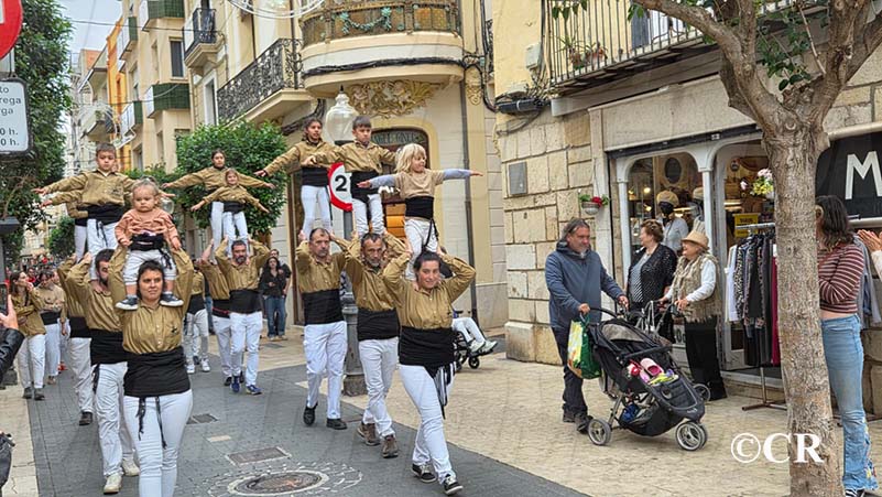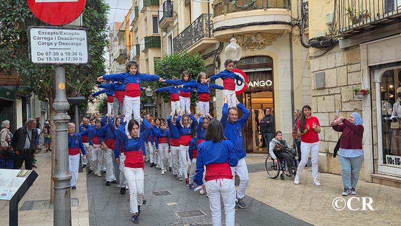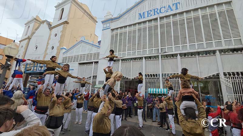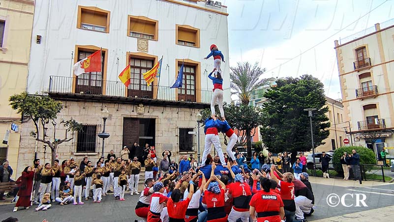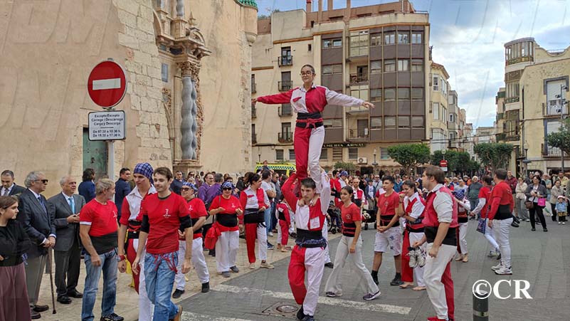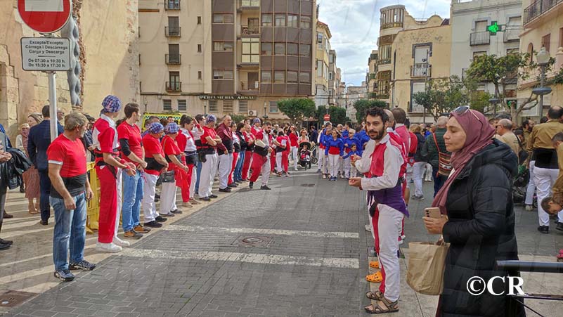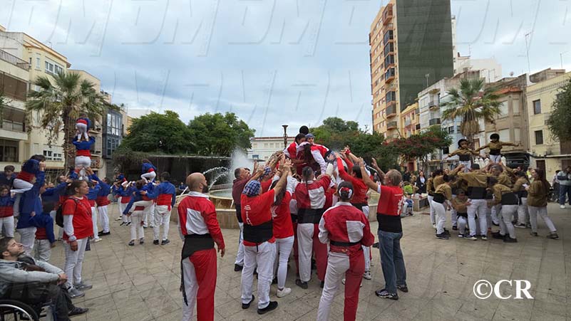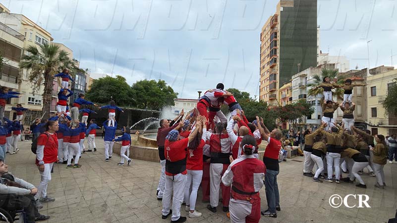 La part final de la trobada s’ha realitzat a la Plaça de l’Ajuntament de Vinaròs, on les colles han realitzat les seves figures i on els vinarossencs han presentat per primer cop la figura de la “morera”, la seva primera figura de cinc altures.