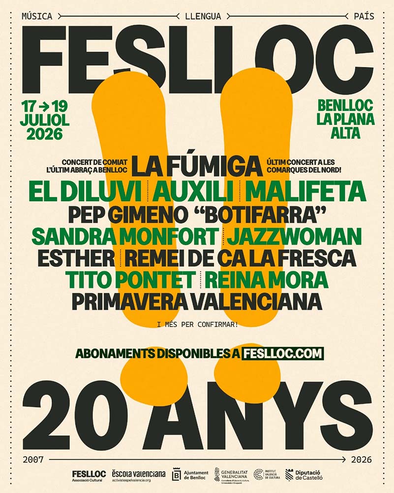 El festival de música Feslloc ha anunciat, a través de les seves xarxes socials, una nova confirmació per a l’edició d’aquest any, que tindrà lloc el 17, 18 i 19 de juliol a la localitat de Benlloc, a la Plana Alta, en la celebració del seu 20é aniversari.