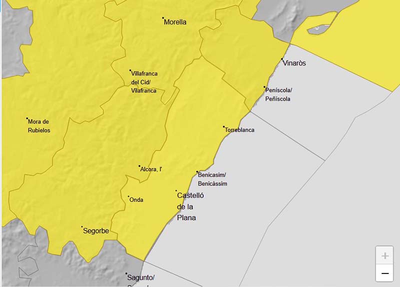 L’Agència Estatal de Meterologoia (AEMET) ha instaurat per demà, dijous 5 de març, una alerta groga per precipitacions en el litoral i interior nord de la província de Castelló.