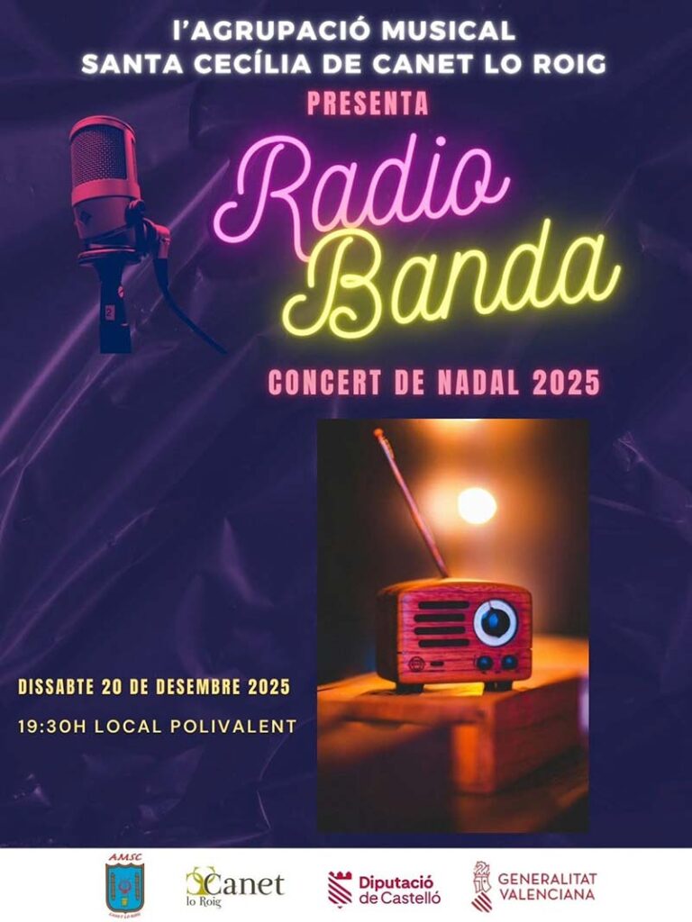 L’Agrupació Musical Santa Cecília de Canet Lo Roig ha presentat, a través dels seus canals de difusió, el concert de Nadal 2025, titulat “RADIO-BANDA”.