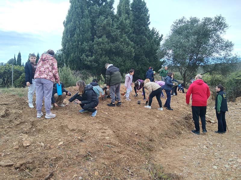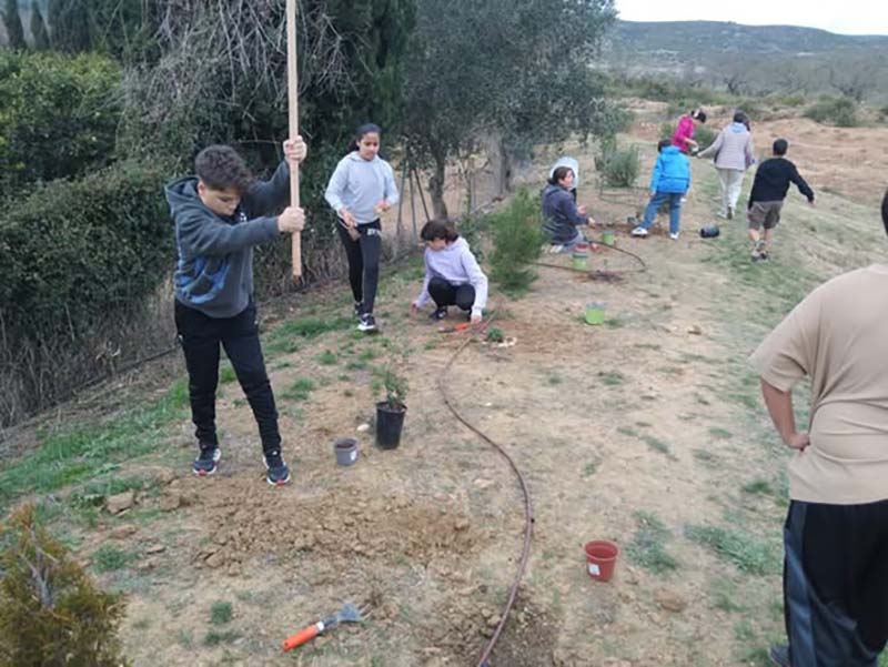Amb motiu de la commemoració del Dia de l’Arbre, l’alumnat del CEIP Lo Campanar ha participat en una jornada de plantació de diverses espècies autòctones, com carrasques, oliveres, pins i plantes aromàtiques, entre les quals destaquen el romaní i la lavanda.