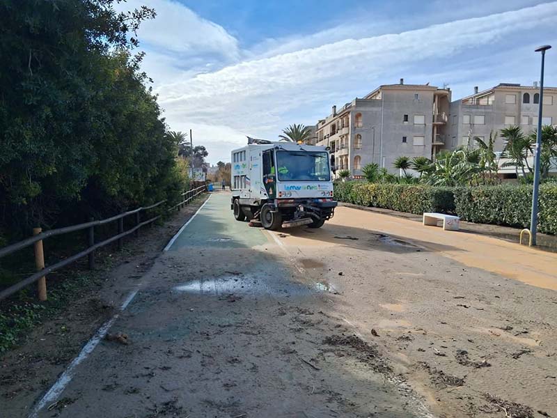 Els serveis tècnics municipals han realitzat una valoració dels possibles danys i, a l’espera que baixe completament la maror, s’estima que no s’han produït danys estructurals, sent els principals efectes l’acumulació de materials i la brutícia generada pel temporal.