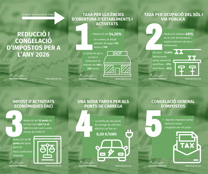 “Amb aquestes rebaixes volem projectar Alcanar com un municipi més atractiu on emprendre i per invertir-hi, alhora que donem un impuls al nostre teixit comercial i econòmic”, valora l’alcalde, Joan Roig. “Aquestes rebaixes fiscals són una eina més per fer costat a les empreses i comerços que donen vida als nostres carrers i generen ocupació”, afegeix.