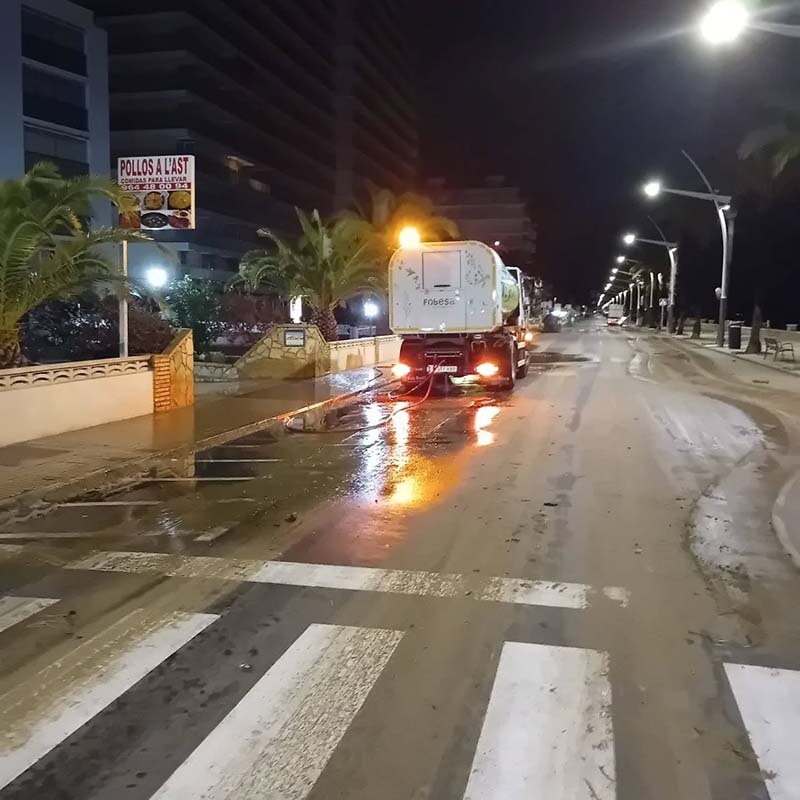Després de les intenses primeres hores del temporal marítim registrades ahir, durant la madrugada els equips de neteja viària i gestió de l’aigua han estat treballant de manera intensa a Peníscola, en coordinació amb la Policia Local i la Brigada d’Obres, per garantir el restabliment de la circulació a les zones pròximes al litoral.
