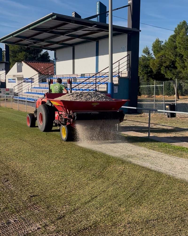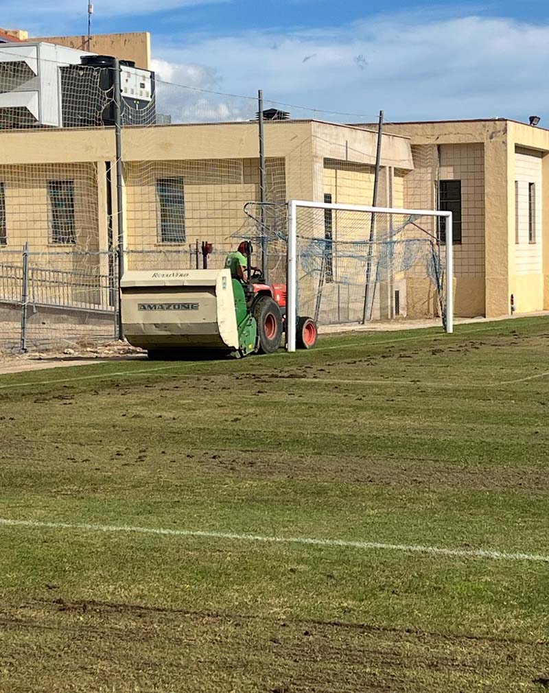 L’Ajuntament va dur a terme les tasques de ressembra i transició de la gespa d’estiu a la d’hivern al camp de futbol municipal.