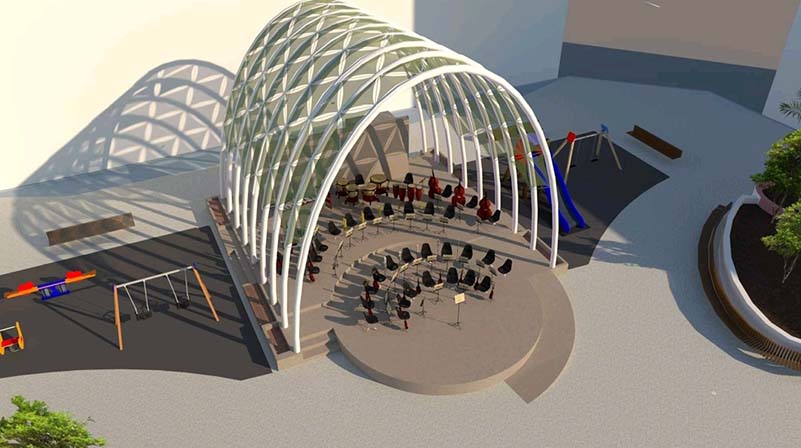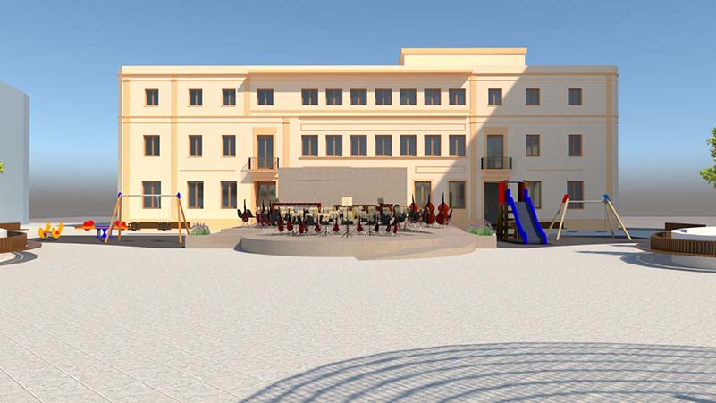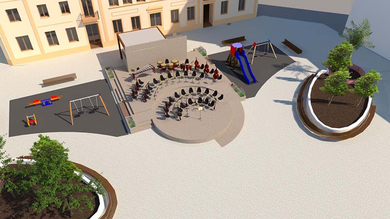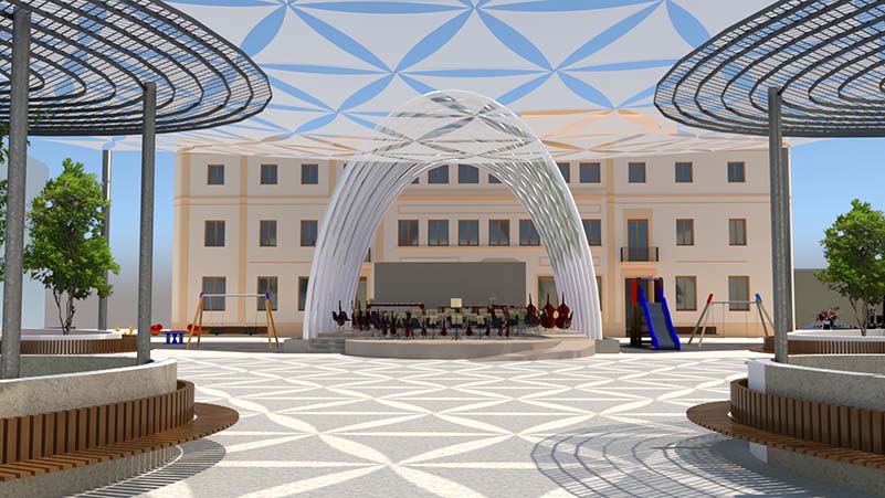 - L’actuació, amb una inversió total prevista de 545.000 euros, preveu la construcció d’un escenari ornamental, a més de la instal·lació d’un tendall per a l’estiu.