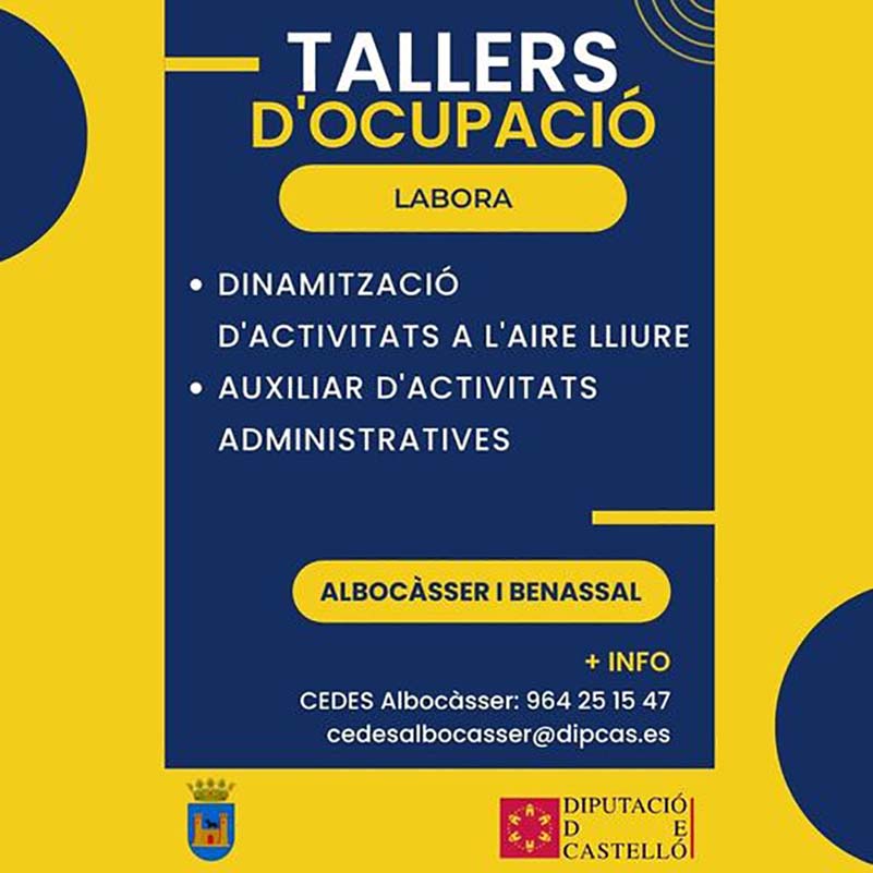 També a Albocàsser s’impartiran tallers de Labora en les disciplines de dinamització d’activitats a l’aire lliure i d’auxiliar d’activitats administratives.