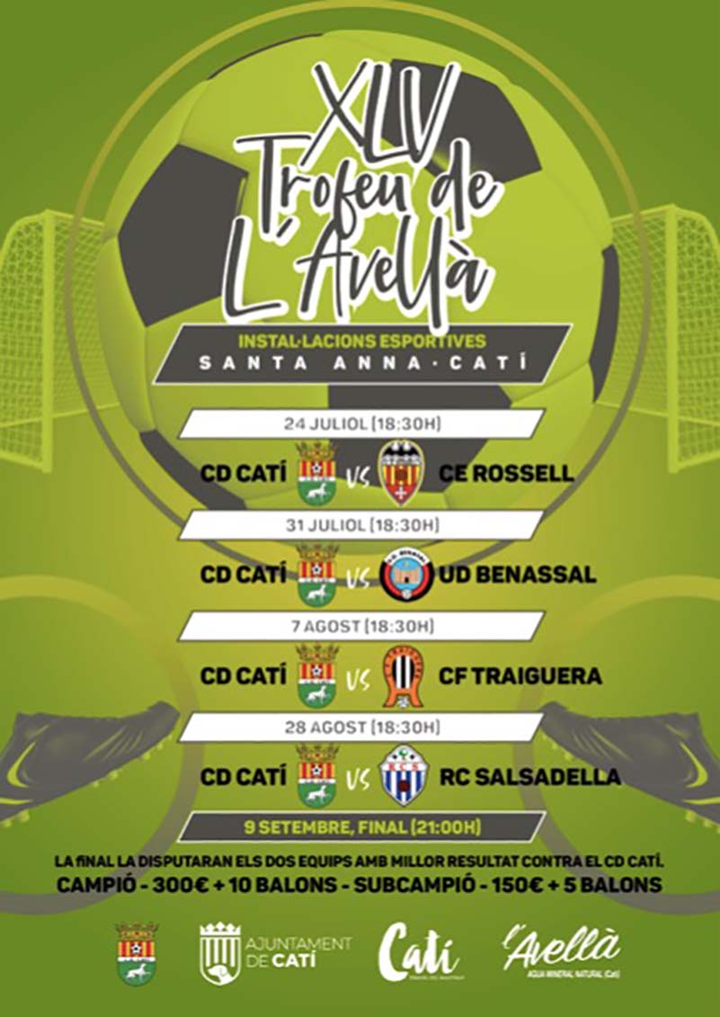 Esportivament Catí serà un dels punts neuràlgics esta setmana amb la final del ‘XLV Trofeu de l’Avellà’ que enfrontarà el CD Catí contra els 2 equips amb millors resultats divendres 9 de setembre a les 21h.