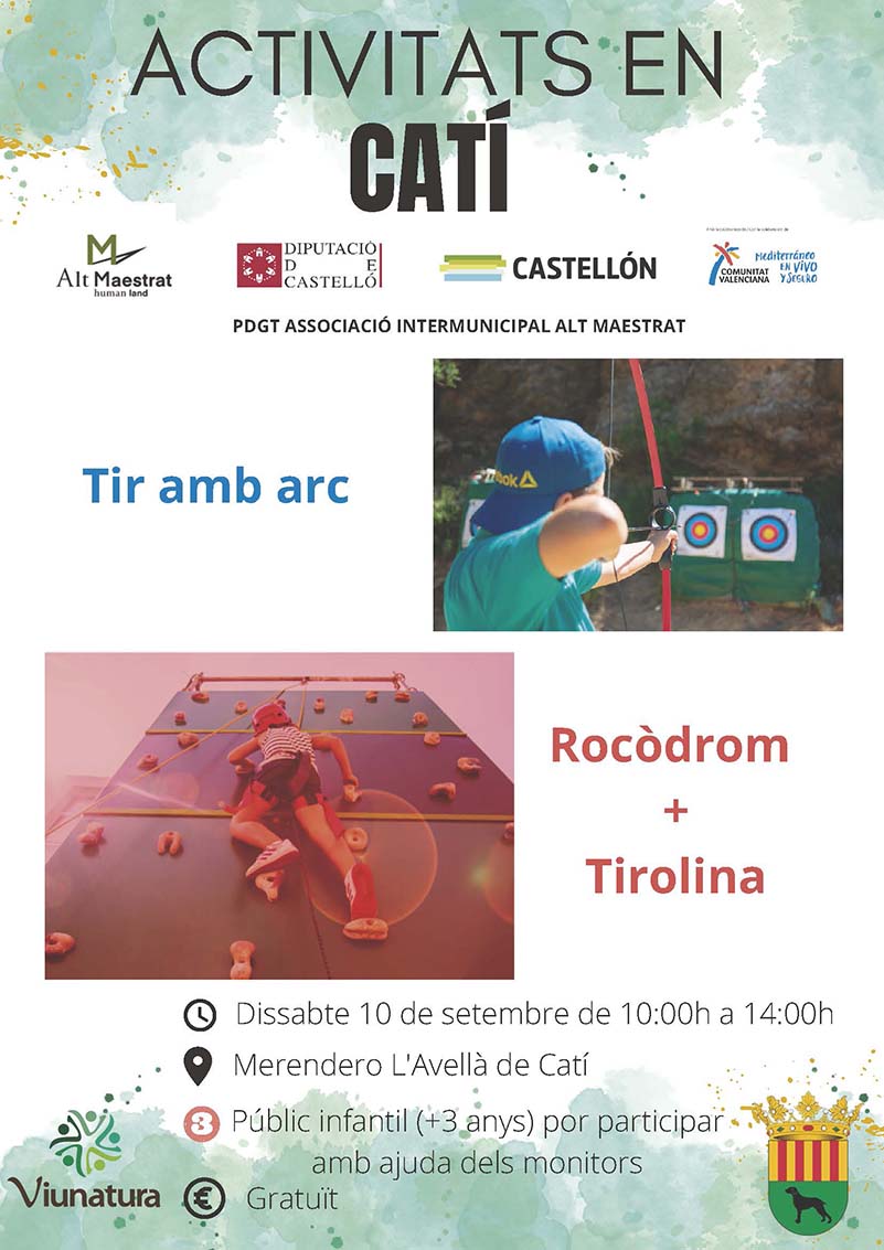 L’Associació Intermunicipal Alt Maestrat Human Land ha organitzat, dins el PDGT amb la col·laboració del Patronat de Turisme de Castelló i Turisme Comunitat Valenciana, una jornada matinera d’activitats infantils com tir amb arc, rocòdrom i tirolina al merendero l’Avellà de Catí.