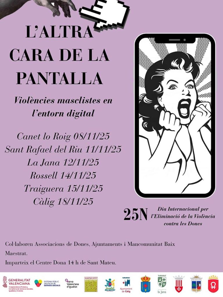 La Mancomunitat Baix Maestrat porta a cada municipi la xerrada “L’altra cara de la pantalla: violències masclistes en l’entorn digital”, una activitat impulsada per l’Equip de Prevenció del Centre Dona 14h de Sant Mateu.