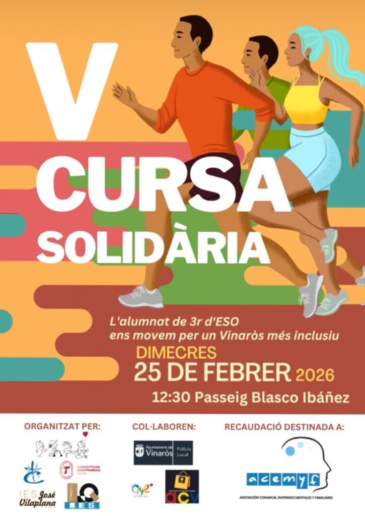 L’alumnat de 3r d’ESO de Vinaròs es mobilitza una vegada més per organitzar la V Cursa Solidària, un esdeveniment que busca promoure la inclusió social i recollir fons per a la causa de ACEMYF (Associació de Famílies de Menors amb Discapacitat de Vinaròs).