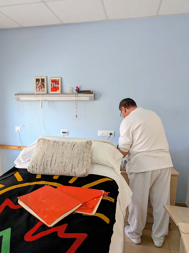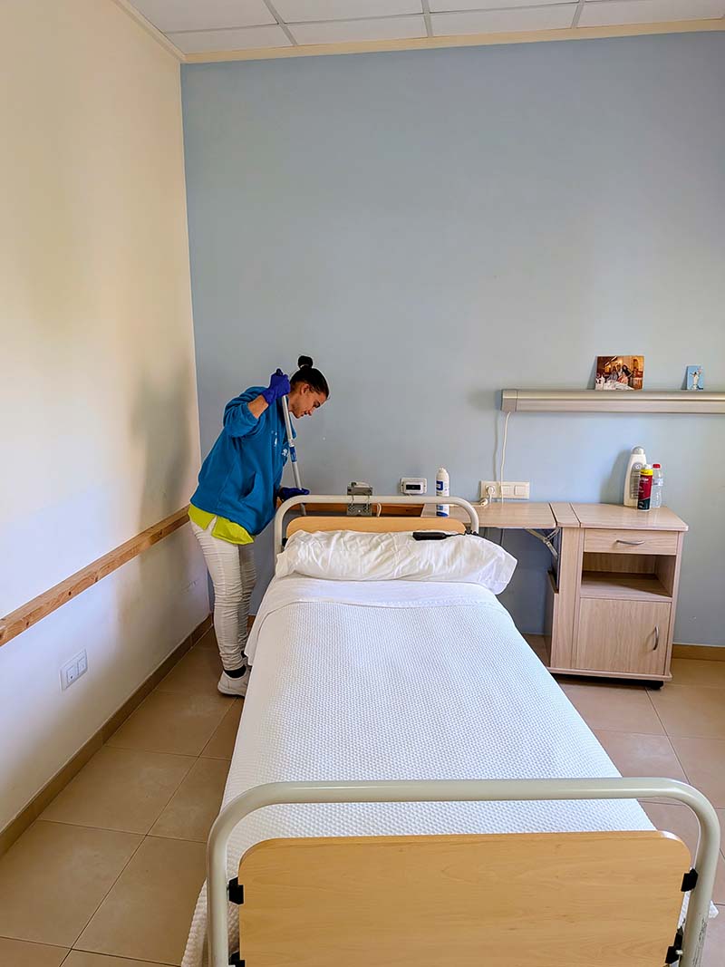 L’alumnat, que rep formació vinculada als certificats d’ocupació domèstica i d’atenció sociosanitària a persones en el domicili, col·labora amb el personal del Geriàtric en tasques de neteja, suport, acompanyament i cura de persones majors.