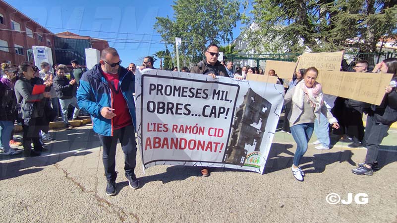 Durant l’acte es van penjar pancartes amb missatges com “Institut digne, ja! Açò és un perill” i “Promeses mil, obres cap. L’Institut Ramón Cid abandonat!”. També és va llegir un comunicat per part del membre de l’AMPA, Jordi López Roig, qui va expressar amb fermesa: “És inadmissible que, després de tants anys, continuem sense un calendari oficial ni garanties. Ja no ens valen els anuncis sense dates, ni les reunions que no porten solucions. Cada dia, més de 1150 persones passen per aquest institut en unes condicions indignes i insegures. No és només una urgència educativa, és una qüestió de responsabilitat social. L’AMPA continuarem mobilitzant-nos fins que les obres siguen una realitat”.