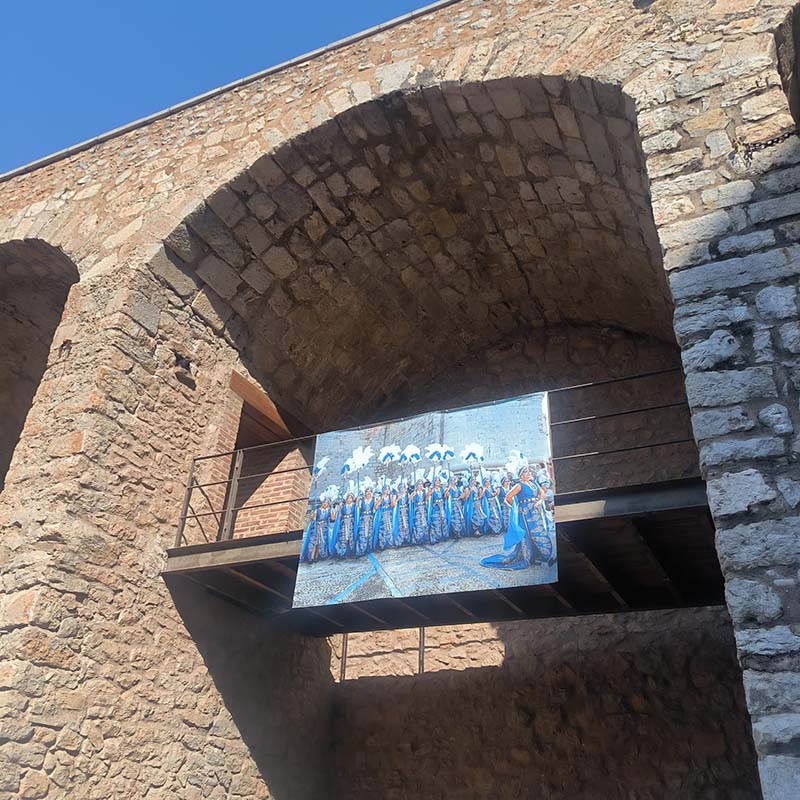 - Més de 35 imatges de gran format distribuïdes pel nucli antic de la ciutat configuren un itinerari dedicat a les desfilades i elements significatius de la festa mora i cristiana.