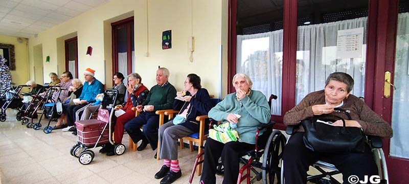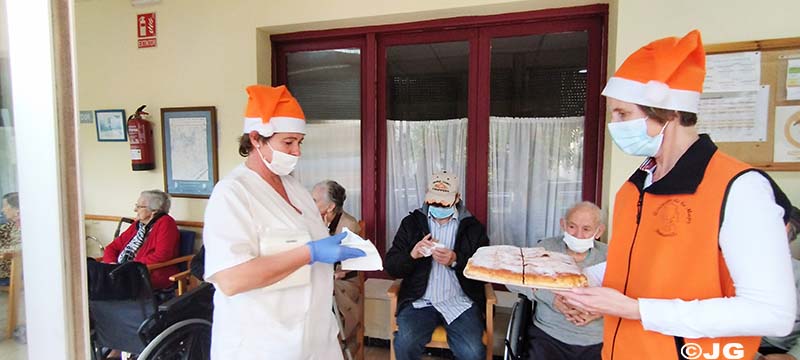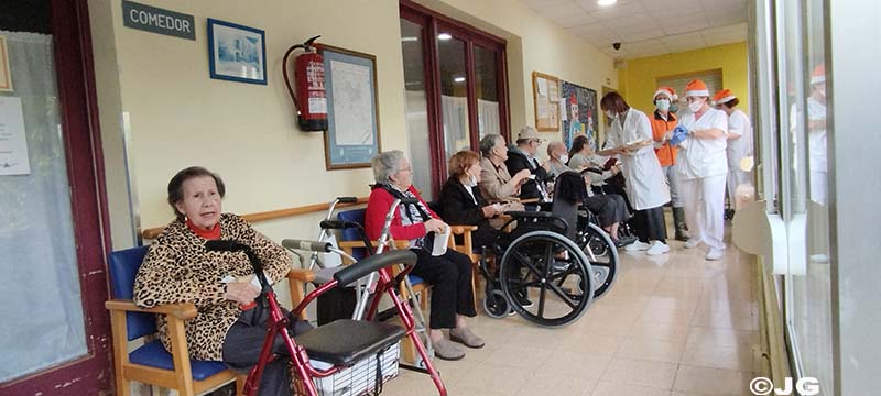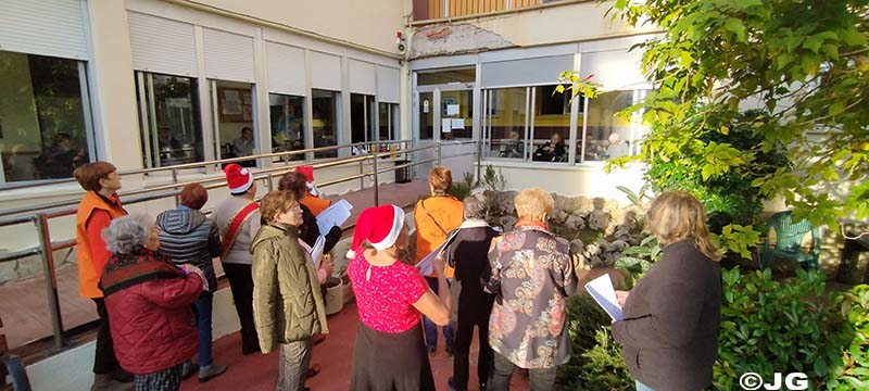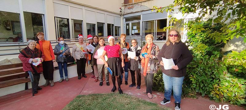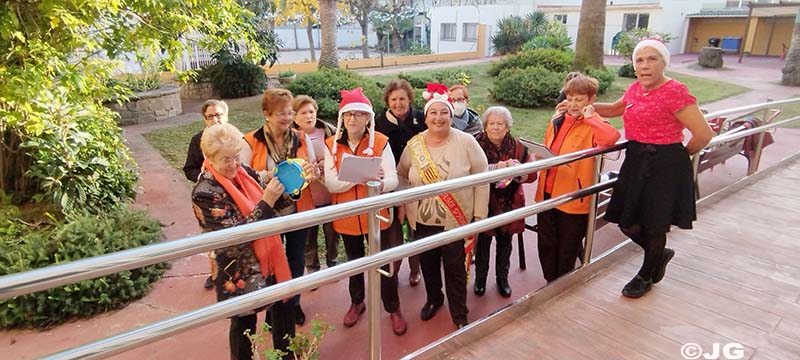 Els van acompanyar a la visita, la junta, sòcies i dama Rosario Echenique, cantant nadales des del jardí als usuaris del centre.