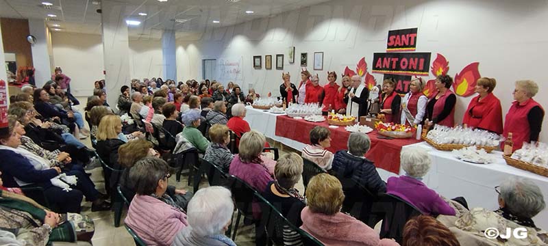 A la seu de l’Associació de la Dona, van celebrar Sant Antoni Abat, amb la benedicció de les típiques coques a càrrec de Mosen Antonio.