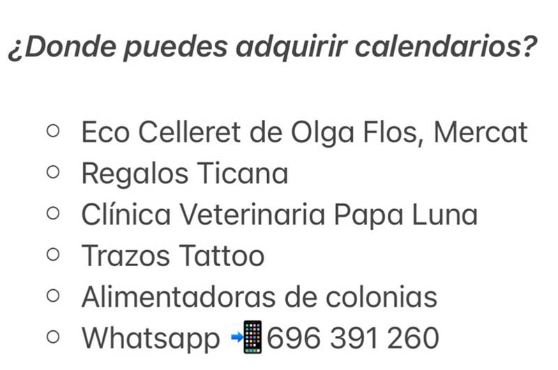 Des de l’associació recorden que el projecte CES (Captura, Esterilització i Solta) és fonamental per controlar les colònies felines de manera ètica i garantir el benestar dels animals. Les aportacions a través de la compra del calendari permetran continuar atenent emergències veterinàries i millorant la qualitat de vida dels gats més vulnerables.