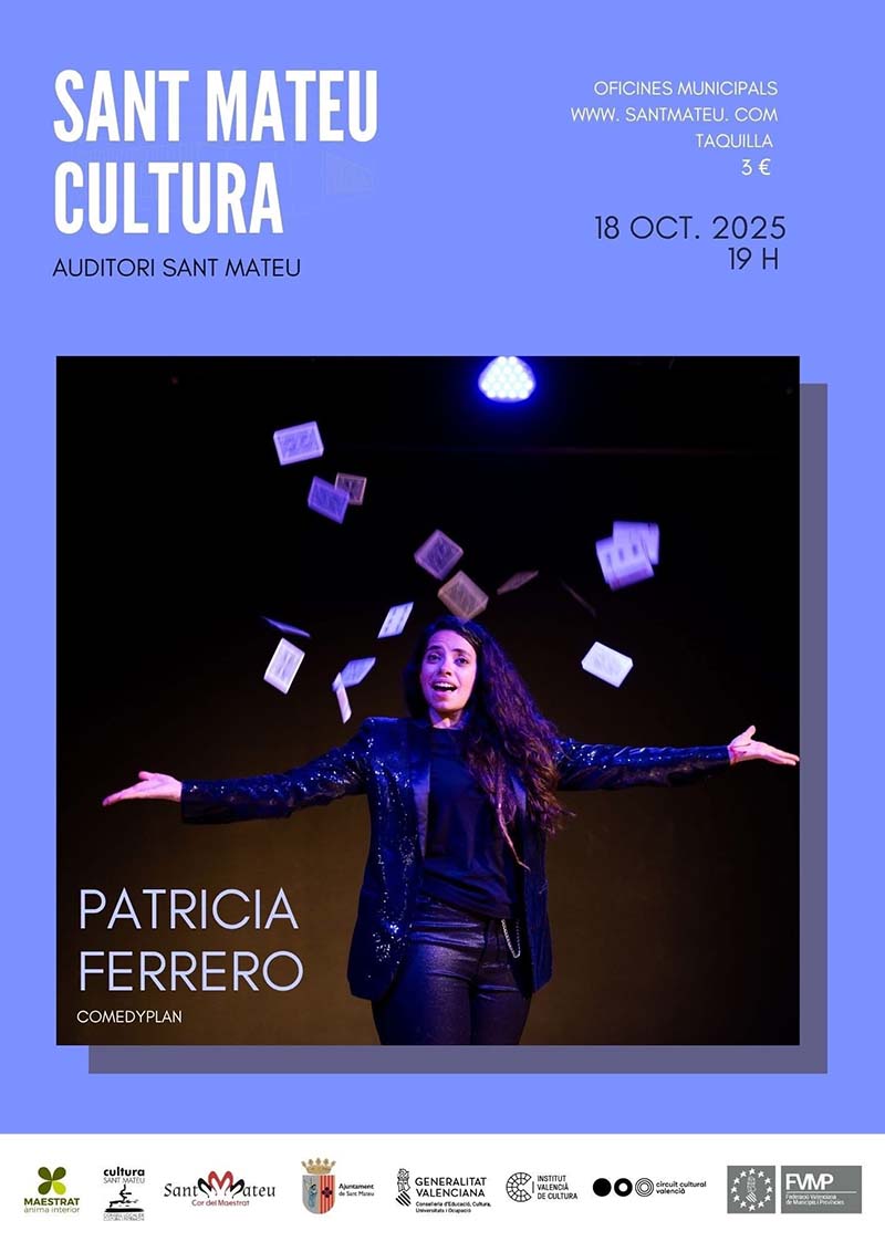 La programació continua el pròxim 18 d’octubre, a les 19.00 h, amb l’espectacle de màgia familiar de la vila-realenca Patrícia Ferrero, que captivarà el públic amb il·lusions carregades de sensibilitat, originalitat i creativitat. Una proposta pensada per a emocionar i sorprendre a tota la família.