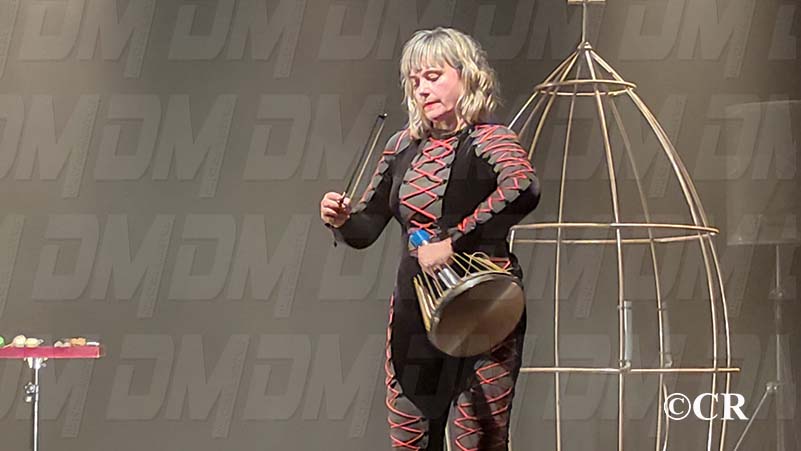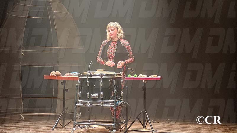 La percussionista, improvisadora i compositora Núria Andorrà, conjuntament amb el creador sonor, Roc Mateu, van realitzar ahir per la vesprada a l’Auditori Municipal Wenceslao Ayguals d’Izco el concert “Reflectir a Santos”.