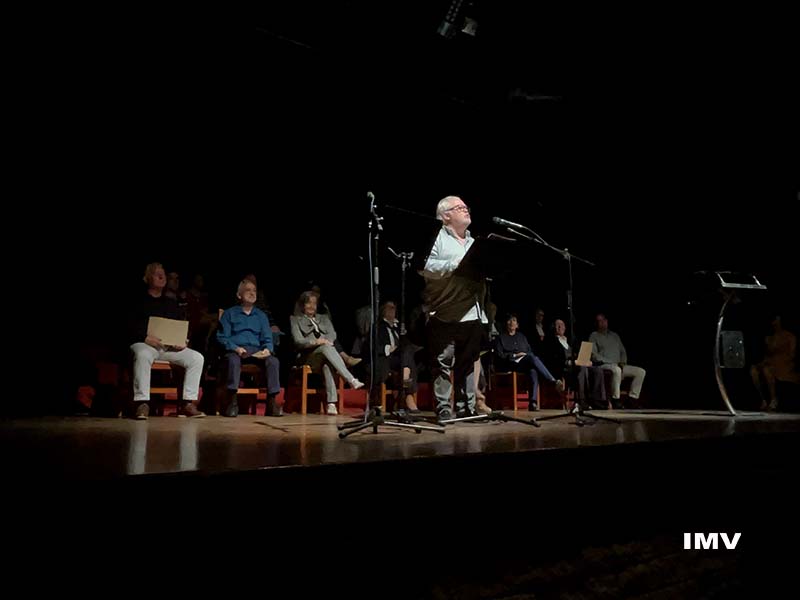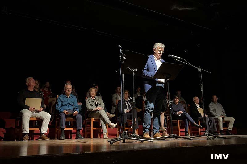 Han participado de la lectura las siguientes personas en este orden: Elsa Arín (La Polilla), José Luis R. Aneas (El Primer Ministro Imperial), Paco Gallego y Concha Salvador (Los tejedores), Núria Isern (La Rueca), Juan Pascual Sorlí (El Ayuda de Cámara), Juanma Cerdá (El Médico Imperial), Anna Foix (La Emperatriz), Conchu Jovaní y Yoyes Rodríguez de Mier (Las Damas de Honor), Marta Roig (La Princesa Imperial), Ilde Añó (El Príncipe Imperial), Enoc Altabás (El Hechicero Imperial), Menchu Soriano (El Asesor Imperial), Josi Ganzenmüller (El Bufón de la Corte), Domi Roig (El Espejo Imperial), Mauro Martín (El Trono Imperial), Benjamín Martí (El Notario del Reino), Toni Fornés (El Comerciante), Pedro Manchón (La Trompeta del Heraldo), Susana Borderías (La Madre del Niño Sincero), Quim Casals Saz (El Niño Sincero), Vicent Jovaní (El General Imperial) y Chema Abasolo (El Emperador).