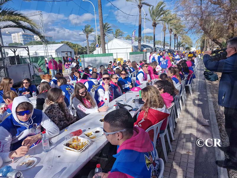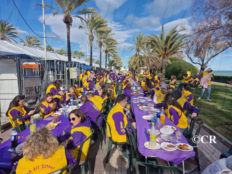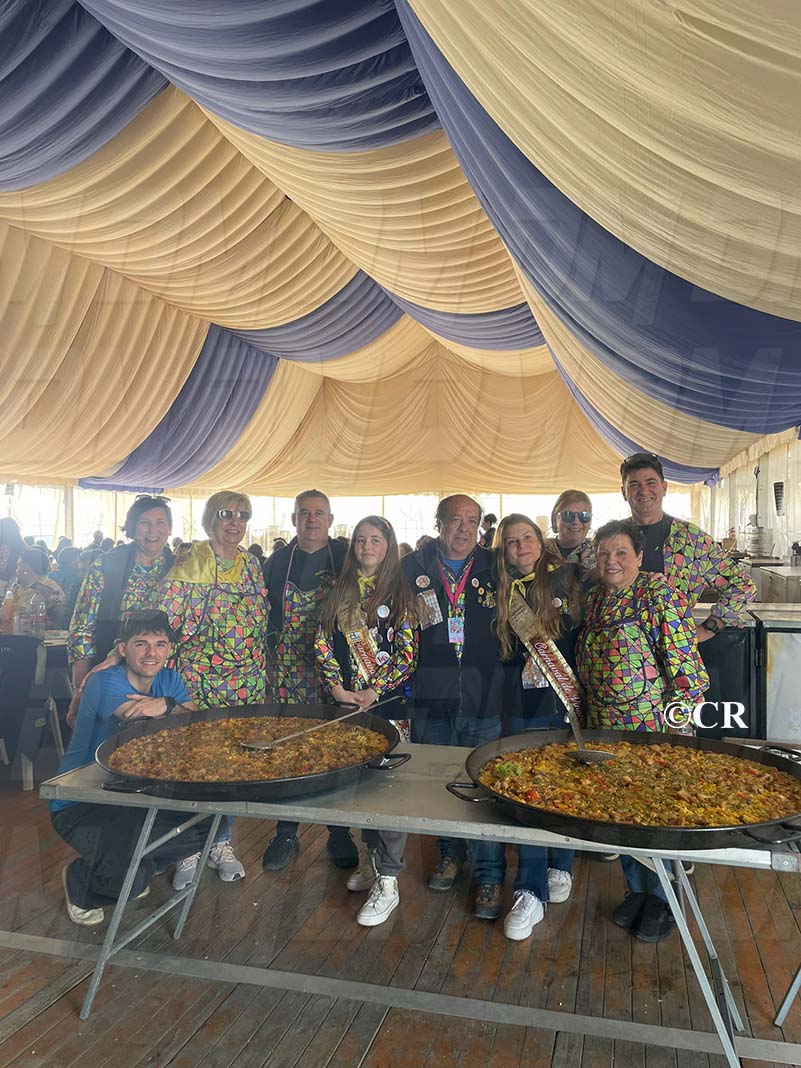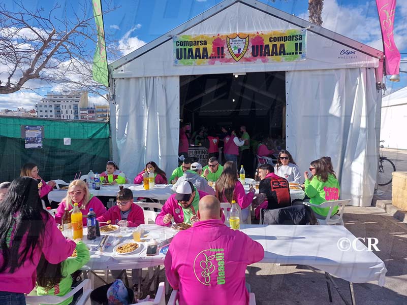 Les comparses del Carnaval de Vinaròs han celebrat aquest migdia al recinte de les casetes la tradicional Festa de les Paelles, un dels actes principals del primer cap de setmana gran del Carnaval de Vinaròs.