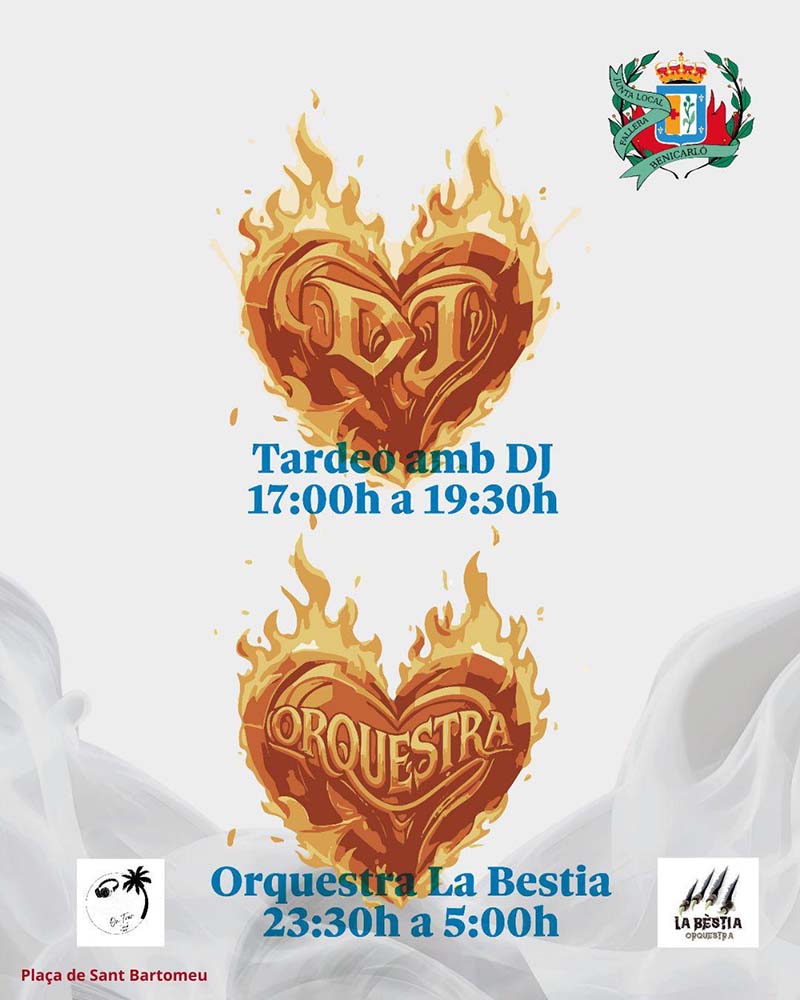 Com a prèvia a la Cridà, la plaça de Sant Bartomeu acollirà un tardeig amb DJ locals, escalfant l’ambient festiu i reunint fallers, falleres i veïnat en una jornada de convivència.