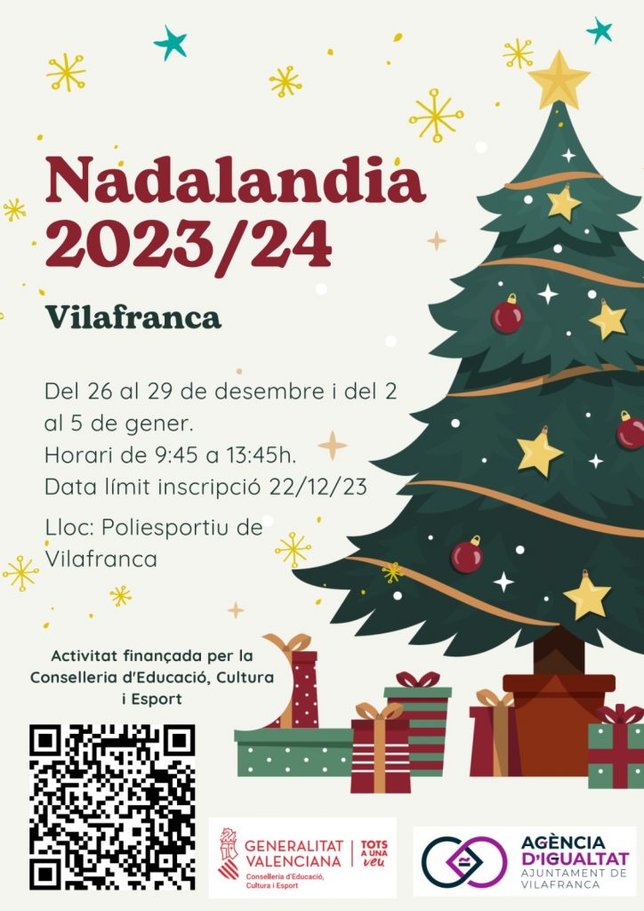 L’Agència d’Igualtat de l’Ajuntament de Vilafranca ha portat a terme Nadalandia 2023, l’Escola de Nadal del municipi, activitat finançada per la conselleria d’Educació, Cultura i Esport de la Generalitat Valenciana. Amb 82 xiquets i xiquetes inscrits, l’Escola de Nadal ofereix a vilafranquins i vilafranquines una conciliació familiar més fàcil.