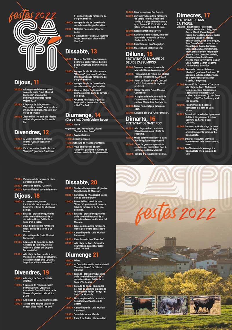 El soroll de les campanes ressonarà primer pels racons de Catí, donant llum verda avui dijous 11 a les Festes 2022. Així, començaran totes les activitats programades com concerts, bous al carrer, sopars, misses o activitats infantils.