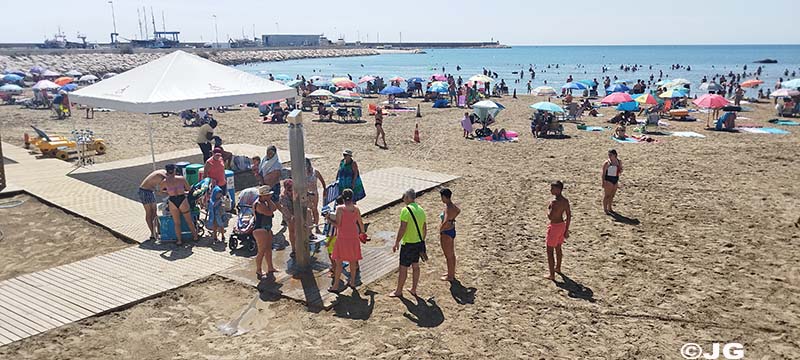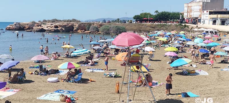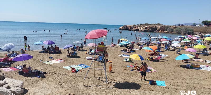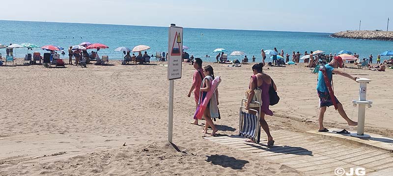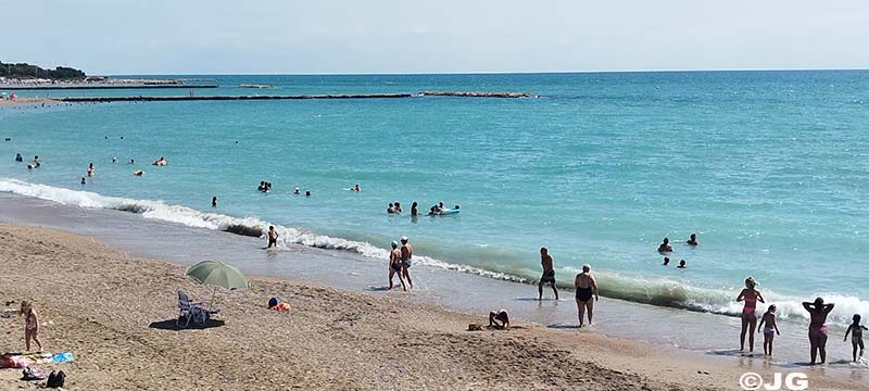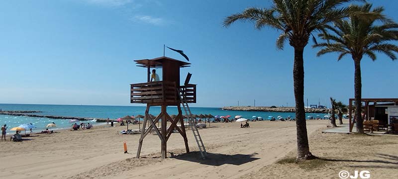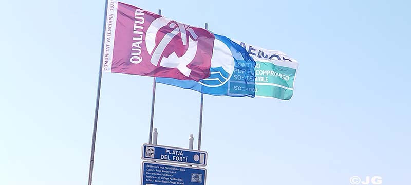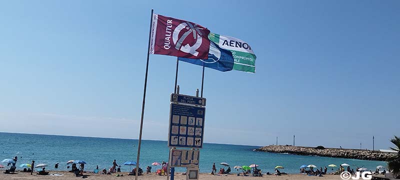 Platja del Forti i platja del Clot de Vinaròs, el mati de divendres 21 de Juliol, on llueix la bandera verda avui