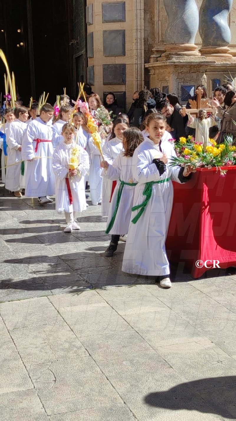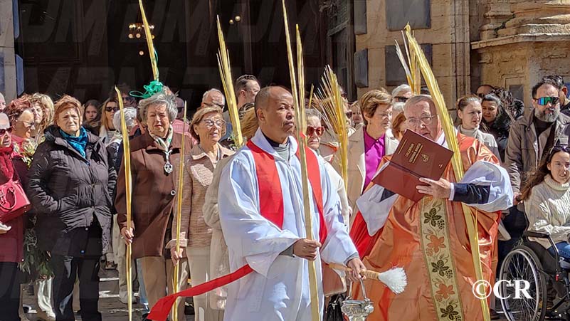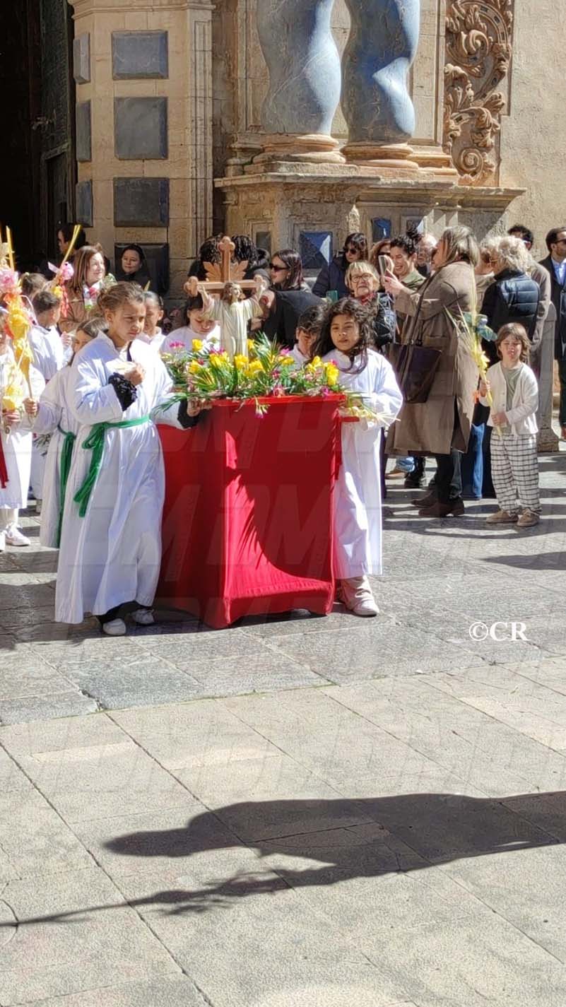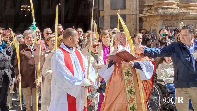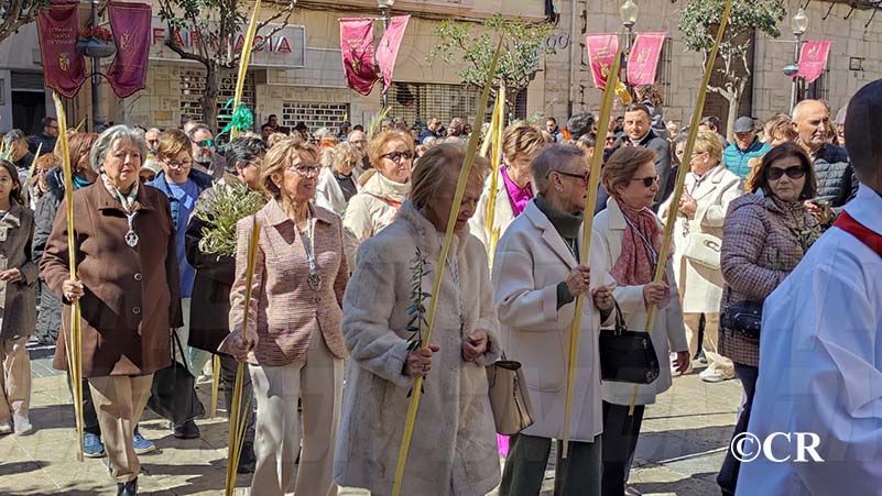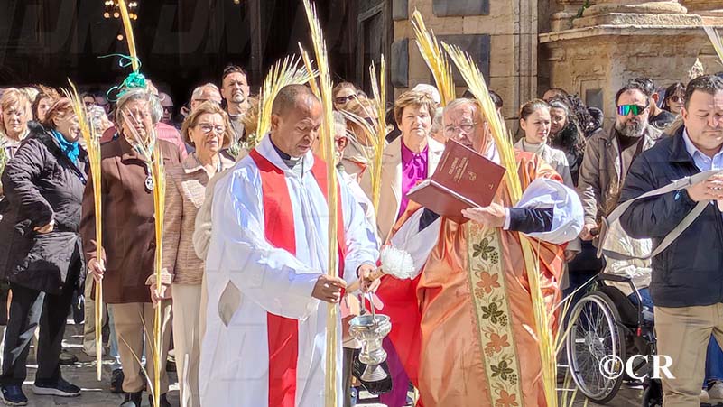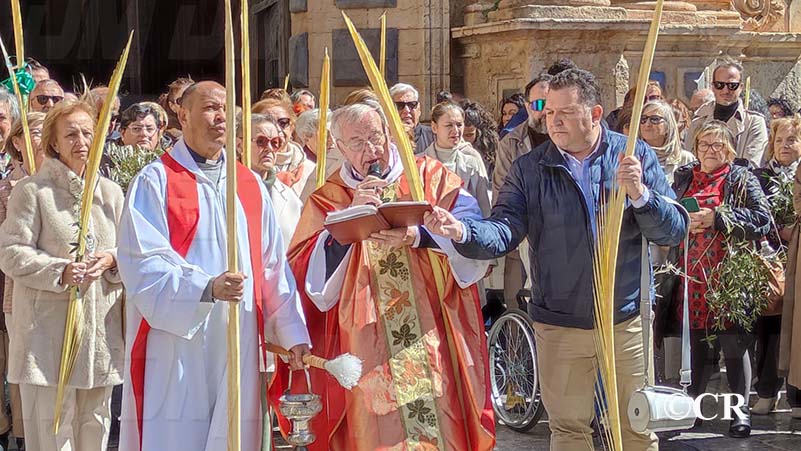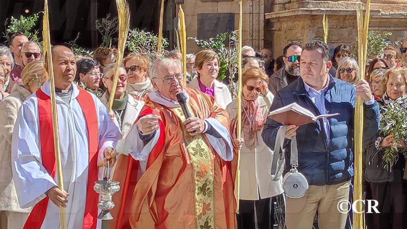 La benedicció dels rams l’ha realitzada mossèn Emili Vinaixa a la porta de l’Església Arxiprestal, acompanyat de tots els xiquets i xiquetes de catequesi, així com dels feligresos de la parròquia.