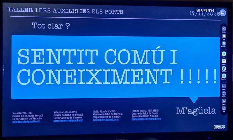 L’IES Els Ports va realitzar el passat dimarts per la vesprada un taller de formació per al professorat de situacions d’emergència, en aquest cas, sobre primers auxilis i la prevenció de la drogodependència dins dels sistemes educatius.