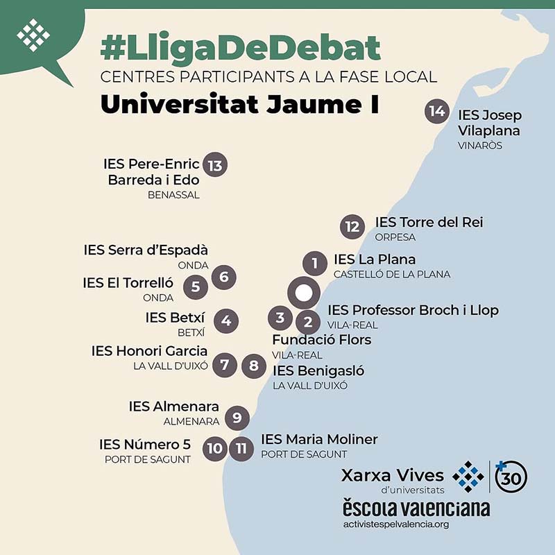 El centre docent vinarossenc IES José Vilaplana és un dels 14 centres participants en la fase local de la Lliga de Debat de Secundària i Batxillerat 2025 organitzada per la Xarxa Vives d’Universitats i l’Escola Valenciana.
