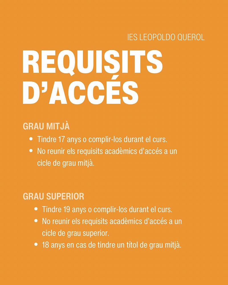 • No reunir els requisits acadèmics d’accés a un cicle de grau superior.