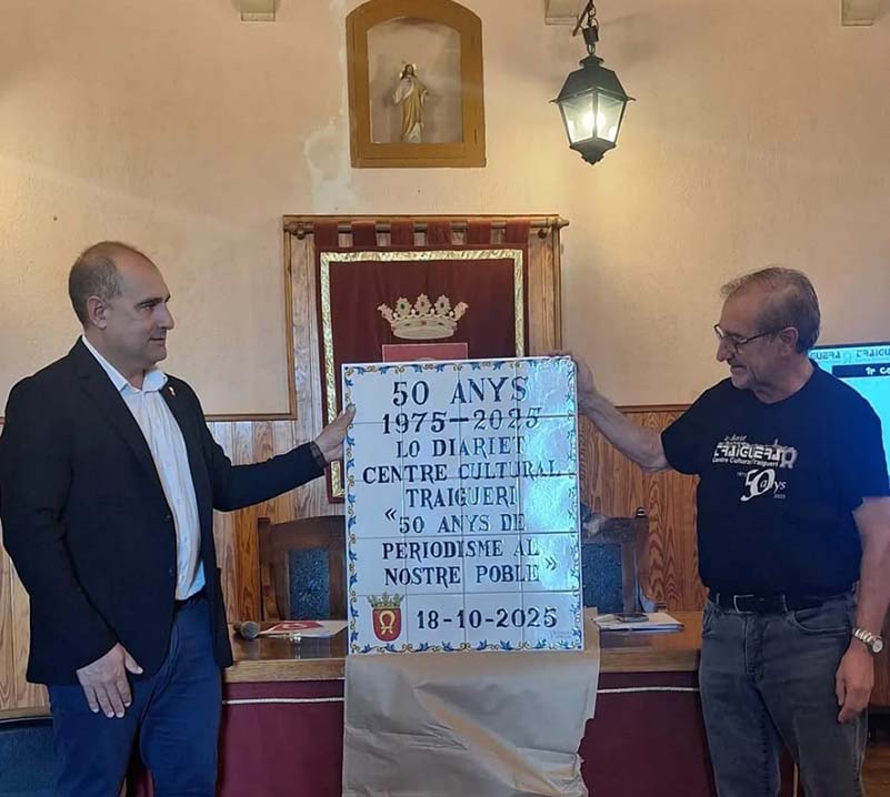 En l’acte s’ha entregat una placa en la que es pot veure la inscripció: “50 Anys 1975-2025, Lo Diariet Centre Cultural Traiguerí, 50 Anys de Periodisme al Nostre Poble”.