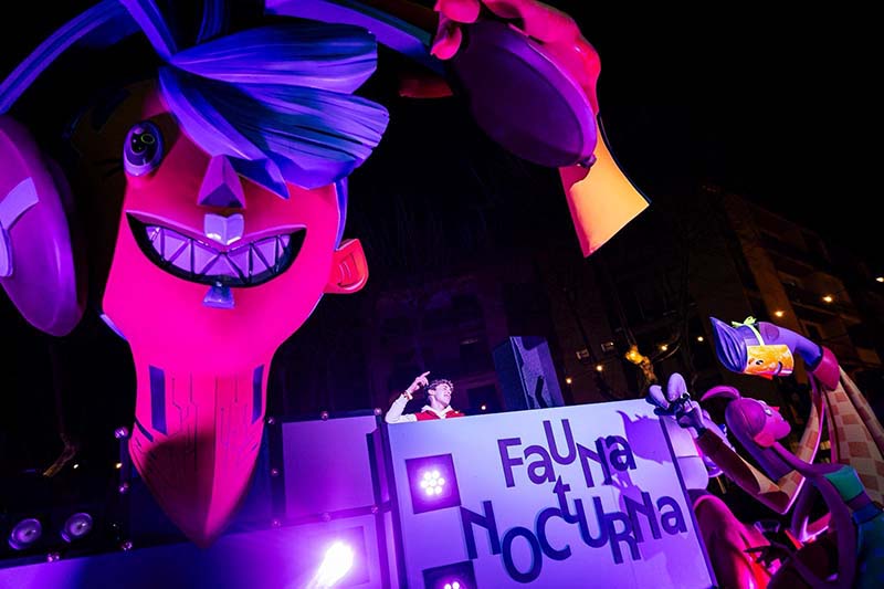 Un dels moments més destacats va ser l’actuació del DJ internacional Michael Rod, que va oferir la seua sessió en un escenari molt especial: punxant des de l’interior d’una falla, una proposta sorprenent que va captar l’atenció del públic i que va aportar un toc innovador a la festa.