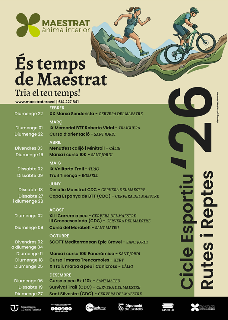 Amb aquesta programació, la destinació consolida el seu posicionament com a referent del turisme actiu a l’interior nord de Castelló, projectant la seua ànima activa a través d’experiències autèntiques arrelades a la natura i al patrimoni, i convertint el Maestrat en un gran escenari esportiu.