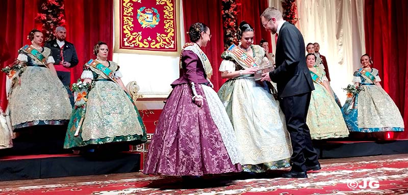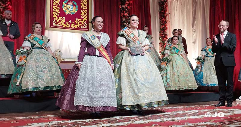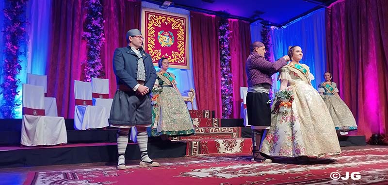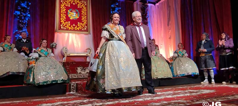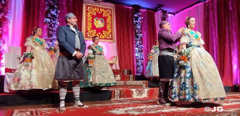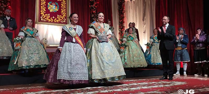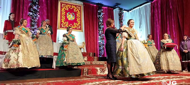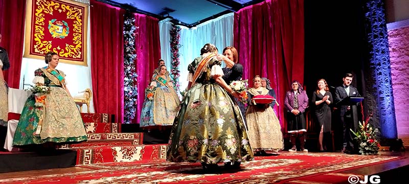 L’Alcaldessa de la ciutat ha estat l’encarregada de col·locar la banda acreditativa de Fallera Major Maria, mentre que el President de la Junta Local Fallera l’ha col·locat a la Cort d’Honor.