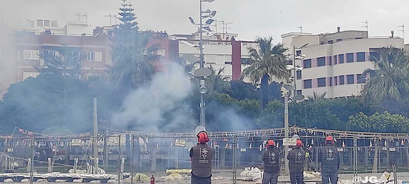 Malgrat les amenaces de la pluja, a la plaça Constitució de Benicarló, el diumenge 20 de març a les 14 hores, es va disparar la darrera mascleta Falles 2022