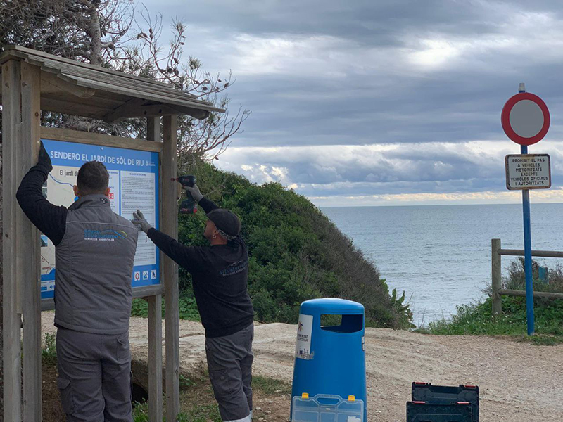 La Regidoria de Medi Ambient, encapçalada per Agustín Molinero, ha fet la renovació dels cartells del Jardí de Sòl de Riu. En concret, ha canviat el que hi ha al final de la sendera, que es trobava molt deteriorat, a més de renovar el vinil de protecció del cartell de l’entrada. Aquesta feina ha suposat una inversió de 2.230€, dels quals 922€ han estat subvencionats per la Diputació de Castelló.