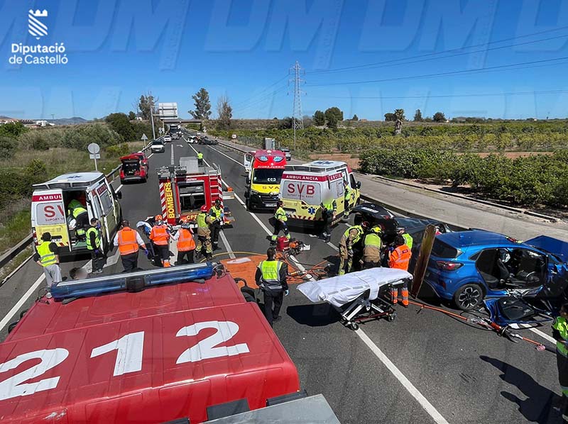 Set persones traslladades a l’hospital després d’un accident múltiple a la N340 al terme municipal de Villareal