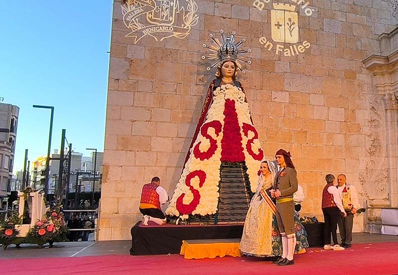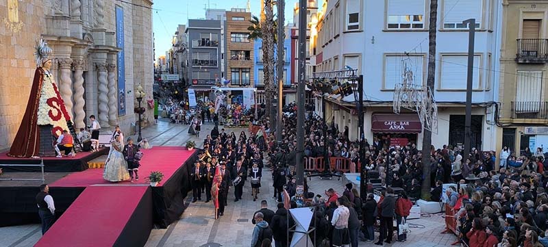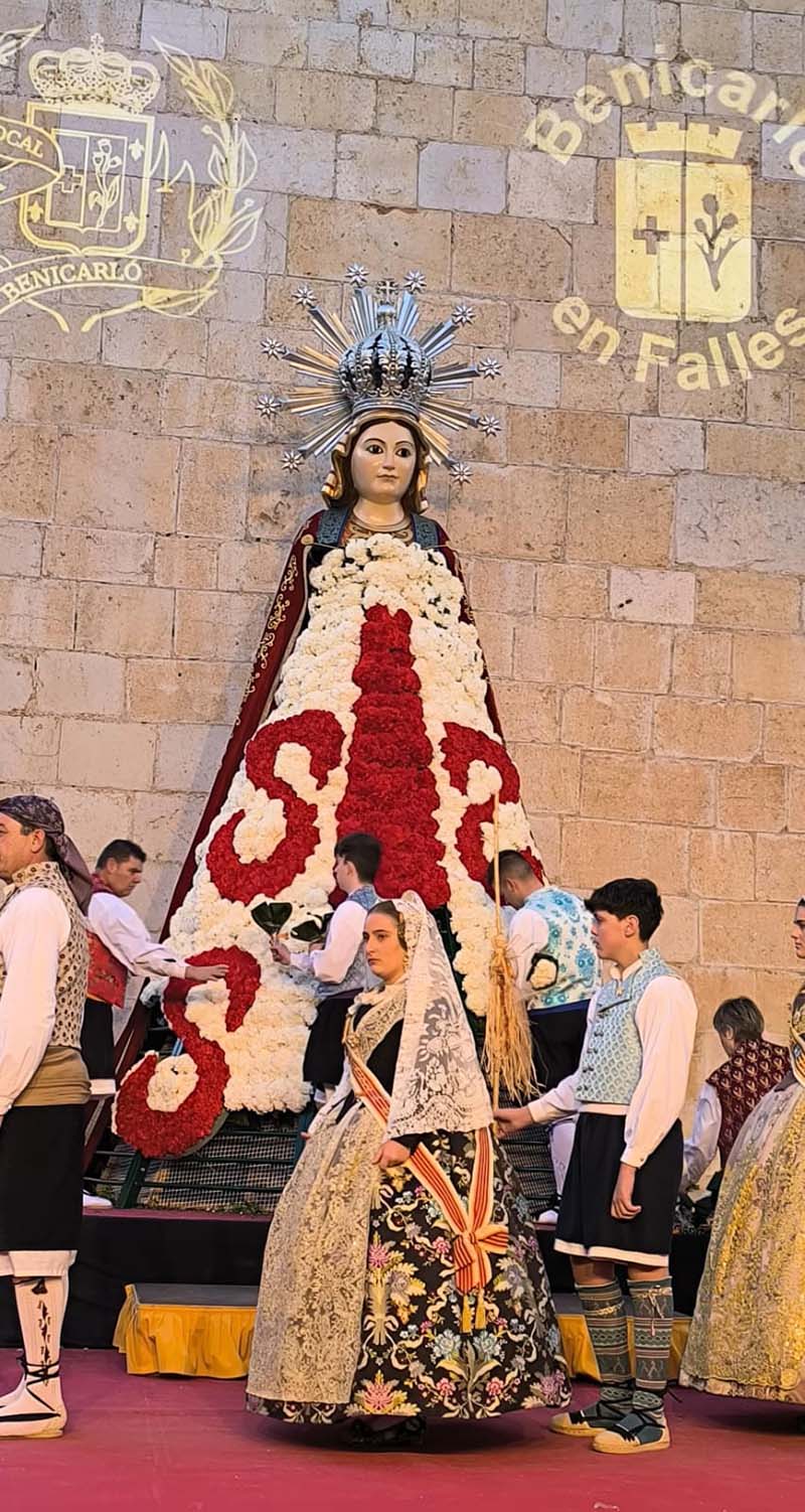La jornada de diumenge 15 de març ha estat marcada per un dels actes més emotius de les Falles de Benicarló amb la tradicional ofrena de flors a la Mare de Déu de la Mar, celebrada a Benicarló.